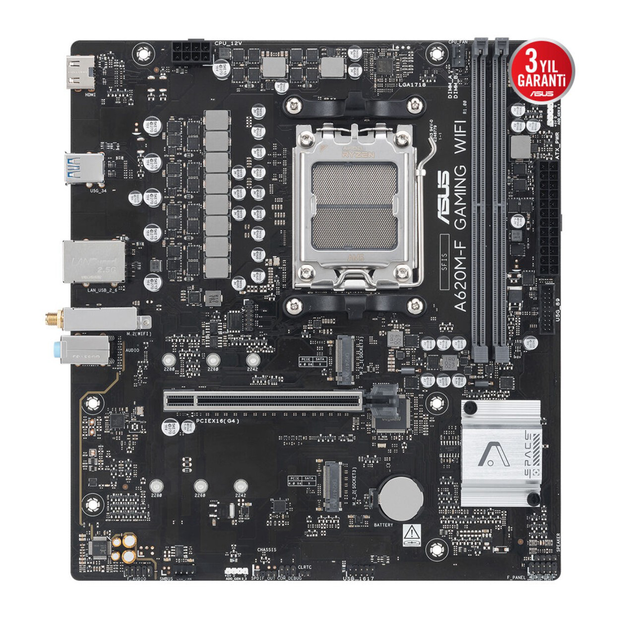 2x USB 3.2 Gen 1 2x USB 2.0 1x HDMI 1x Wi-Fi Modülü 1x Ethernet (Realtek 2,5 Gb) 3x Ses Jakı |