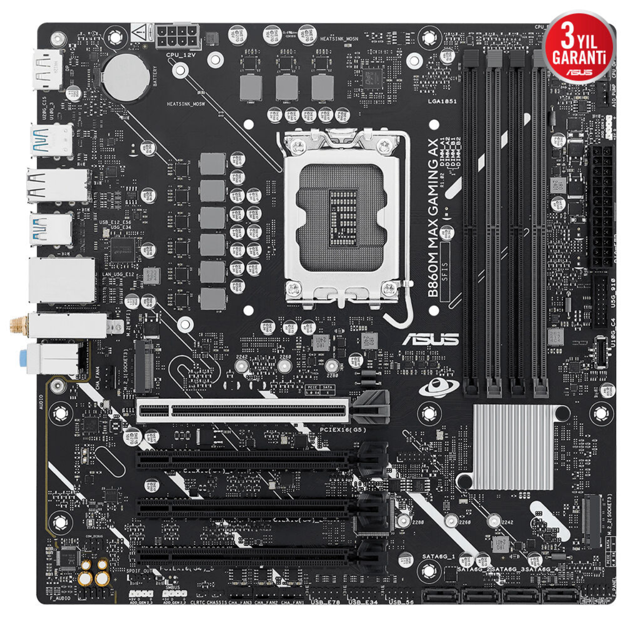 ASUS B860M MAX GAMING AX LGA1851 DDR5 8666 DP 3xM2 USB3.2 WiFi 6+BT 2.5Gbit mATX